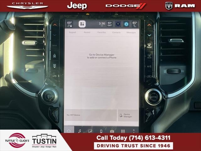 ENGINE: 6.7L I6 CUMMINS HO TURBO DIESEL Selective Catalytic Reduction (Urea), Dual 730 Amp Maintenance Free Batteries, Cummins Turbo Diesel Badge, Heavy Duty Engine Cooling, Diesel Exhaust Brake, Supplemental Heater, 3.42 Axle Ratio, Front Bumper Sight Shields, Capless Fuel Fill w/o Discriminator, GVWR: 11,040 lbs, BIG HORN LEVEL 2 PLUS EQUIPMENT GROUP Surround View Camera System, Blind Spot & Cross Path Detection, LED Tail Lamps, Red Tail Lamp Bezels, Power Adjustable Pedals, Emergency Vehicle Alert System (EVAS), 12 Touchscreen Display, Glove Box Lamp, Auto Power-Folding Mirrors, Footwell Courtesy Lamp, 115V Auxiliary Rear Power Outlet, Media Hub w/2 Charge Only USBs, Anti-Spin Differential Rear Axle, Drowsy Driver Detection, Heated Front Seats, MOPAR Deployable Bed Step, Exterior 115V AC Outlet, Alexa Built-In, Active Lane Management System, Forward & Reverse Utility Lights, Locking Lower Glove Box, Remote Start System, 9 Alpine Speakers w/Subwoofer, Disassociated Touchscreen Display, Dual Wireless Charging Pad, Trailer Tire Pressure Monitoring System, Dual Glove Boxes, 115V Auxiliary Front Power, NIGHT EDITION Gloss Black Nostrils/Mic Black Grille, Tires: LT285/60R20E OWL On/Off Road, Black Exterior Truck Badging, Wheels: 20 x 8.0 Black Painted Aluminum, Body Color Grille-Surround, Black Interior Accents, Black Wheel Center Hub, Painted Front Bumper, Painted Rear Bumper, TRANSMISSION: 8-SPEED TORQUEFLITE HD AUTOMATIC, BLACK, PREMIUM CLOTH BUCKET SEATS Bucket Seats, Power Adjust 8-Way Driver Seat, Folding Flat Load Floor Storage, Rear 60/40 Folding Seat, Front Seat Back Map Pockets, Power 2-Way Driver Lumbar Adjust, Full Length Upgraded Floor Console.