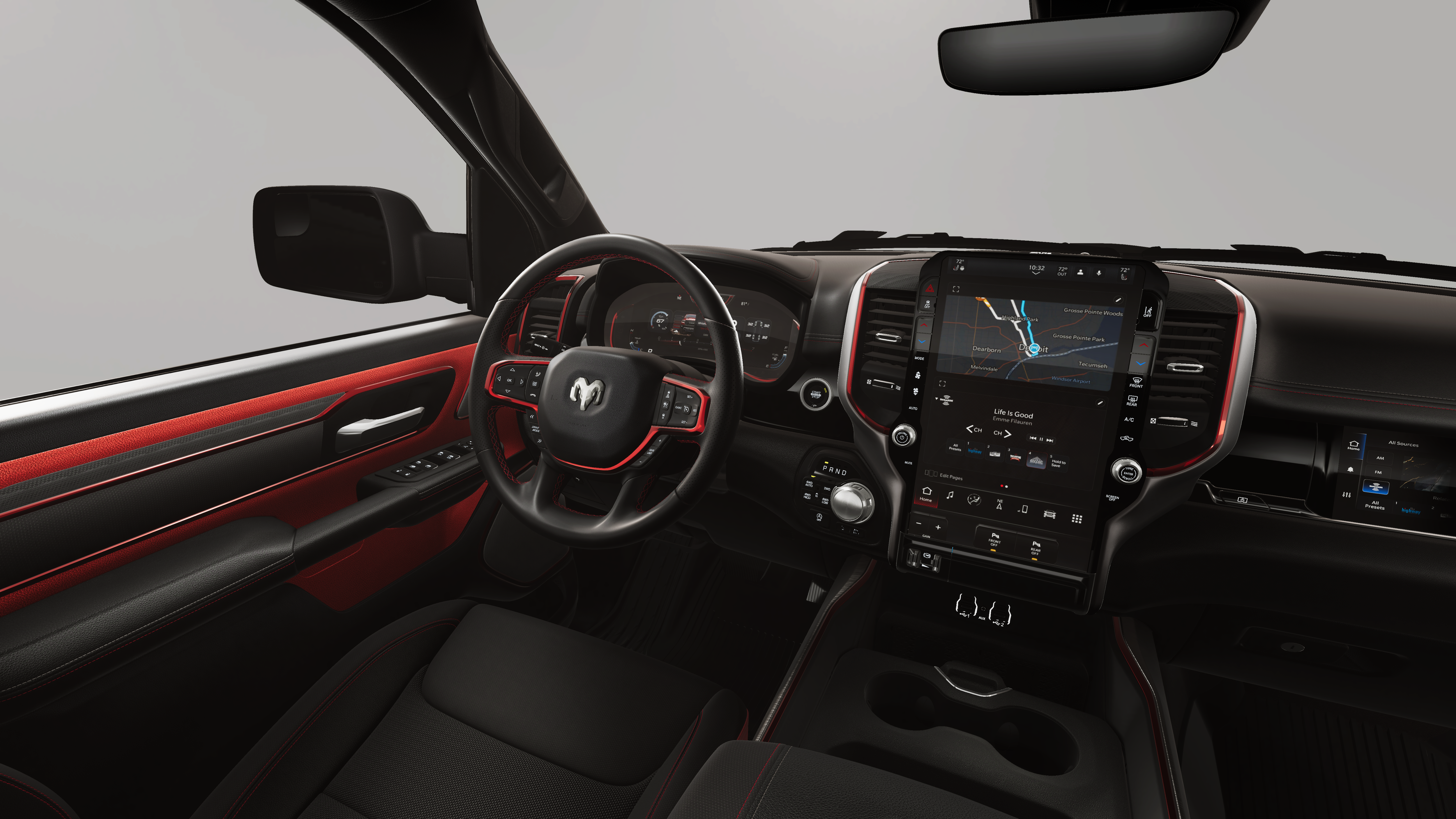 REBEL LEVEL 2 EQUIPMENT GROUP Power Adjustable Pedals w/Memory, Front Passenger Interactive Display, Power 2-Way Passenger Lumbar Adjust, Auto Power-Folding Mirrors, 115V Auxiliary Rear Power Outlet, Media Hub w/2 Charge Only USBs, Proximity Approach/Departure Lamps, Power Adjust 8-Way Front Passenger Seat, Security Alarm, Dual Wireless Charging Pad, harman/kardon® 19 Speaker Premium Sound, Rear Window Defroster, Rain Sensitive Windshield Wipers, Auto Dim Exterior Driver Mirror, Accent Color Door Handles, Heated Second Row Seats, Black Painted Exterior Mirrors Caps, Exterior Mirrors Approach Lamps, Smartphone As A Key Capable, 14.4 Touchscreen Display, Accent Color Premium Power Mirrors, Exterior Mirrors w/Supplemental Signals, Exterior Mirrors Courtesy Lamps, Radio: Uconnect 5 Nav w/14.4, BLACK, LUX LEATHER TRIMMED BUCKET SEATS Power 2-Way Passenger Lumbar Adjust, Ventilated Front Seats, Power Adjust 8-Way Front Passenger Seat, BED UTILITY GROUP MOPAR Spray In Bedliner, MOPAR 4 Adjustable Cargo Tie-Down Hooks, Exterior 115V AC Outlet, TRANSMISSION: 8-SPEED AUTOMATIC (8HP75) (STD), ENGINE: 3.0L I6 HURRICANE SO TWIN TURBO ESS (STD).