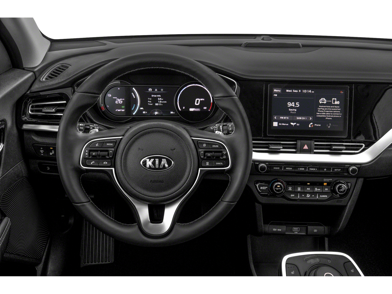 - Radio: AM/FM/SiriusXM -inc: 6-speaker audio system, USB inputs, UVO link w/smartphone integration for remote commands and remote vehicle status, Android Auto and Apple CarPlay, 8" touch screen color display w/rear view monitor, Bluetooth® wireless connectivity w/voice recognition and USB charger outlet