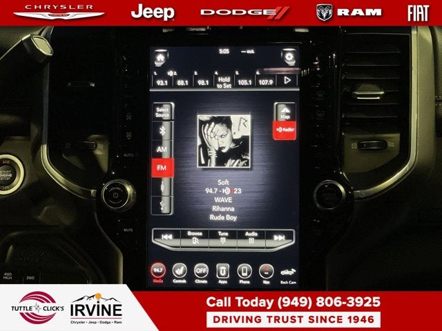 ENGINE: 6.7L I6 CUMMINS TURBO DIESEL Selective Catalytic Reduction (Urea), Dual 730 Amp Maintenance Free Batteries, Cummins Turbo Diesel Badge, Heavy Duty Engine Cooling, Supplemental Heater, 220 Amp Alternator, Tow Hooks, Diesel Exhaust Brake, Front Bumper Sight Shields, Capless Fuel Fill w/o Discriminator, LARAMIE LEVEL 2 EQUIPMENT GROUP Blind Spot & Cross Path Detection, Power Chrome Tow Mirrors w/Convex Spotter & Memory, Mirror-Mounted Aux Reverse Lamps, Exterior Mirrors w/Memory, Power Adjustable Convex Aux Mirrors, Rain Sensitive Windshield Wipers, Power Adjustable Pedals w/Memory, Radio: Uconnect 4C Nav w/8.4 Display, SiriusXM Traffic Plus, Disassociated Touchscreen Display, HD Radio, For Details Visit DriveUconnect.com, 1-Year SiriusXM Guardian Trial, GPS Navigation, SiriusXM Travel Link, Ventilated Front Seats, Remote Tailgate Release, Media Hub w/2 Charge Only USBs, 17 Speaker harman/kardon Premium Sound, Auto High Beam Headlamp Control, Heated Second Row Seats, Foam Bottle Insert (Door Trim Panel), 2nd Row In, WHEELS: 20 X 8.0 POLISHED ALUMINUM Tires: LT285/60R20E OWL On/Off Road, Center Hub, TOWING TECHNOLOGY GROUP CTR Stop Lamp w/Cargo View Camera, Surround View Camera System, Blind Spot & Cross Path Detection, Power Chrome Tow Mirrors w/Convex Spotter & Memory, Mirror-Mounted Aux Reverse Lamps, Exterior Mirrors w/Memory, Power Adjustable Convex Aux Mirrors, Trailer Reverse Guidance, SAFETY GROUP Auto High Beam Headlamp Control, Blind Spot & Cross Path Detection, Power Chrome Tow Mirrors w/Convex Spotter & Memory, Mirror-Mounted Aux Reverse Lamps, Exterior Mirrors w/Memory, Power Adjustable Convex Aux Mirrors, Rain Sensitive Windshield Wipers, Adaptive Cruise Control w/Stop, Adaptive Steering System, Full Speed Forward Collision Warning Plus, Lane Keep Assist, POWER DEPLOYABLE RUNNING BOARDS, BLACK, LEATHER TRIMMED BUCKET SEATS Bucket Seats, High Back Seats, #1 Seat Foam Cushion, Folding Flat Load Floor Storage, Full Length Upgraded Floor Console, ANTI-SPIN DIFFERENTIAL REAR AXLE, TRANSMISSION: 6-SPEED AUTOMATIC (68RFE) Chrome Accent Shift Control. Ram Laramie with Bright White Clearcoat exterior and Black interior features a Straight 6 Cylinder Engine with 370 HP at 2800 RPM*.